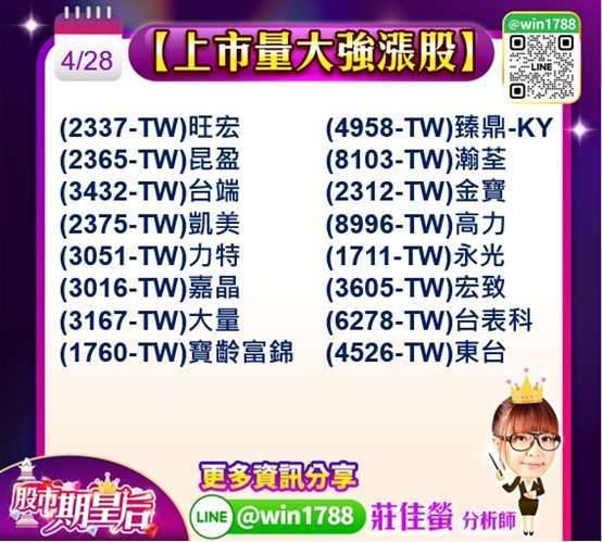 族群方面,PA 族群止跌回穩,(2455-TW) 全新,與 (8086-TW) 宏捷科,表現穩健,顯示低軌衛星與通訊需求持續支撐基本面,同時,先進製程帶動特化材料需求,(1727-TW) 長興,有機會挑戰前高,成為資金關注焦點,傳產族群方面,在台塑四寶撐盤下,指數下檔具備一定支撐力道。