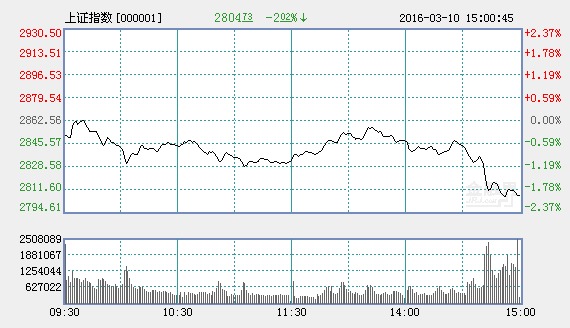 截至收盤,報2804.35點,跌2.03%,成交1418.1億元,深成指報9390.35點,跌1.39%,成交2132.3億元,創業板指報1936.97點,跌1.72%,成交583.94億元,兩市16只非ST股漲停,14股跌停,共計成交3550.4億元,上一交易日全天成交4265.7億元。