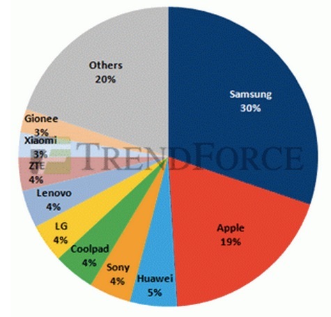TrendForce也點出,因為三星、蘋果的火力猛,中國品牌受壓制。