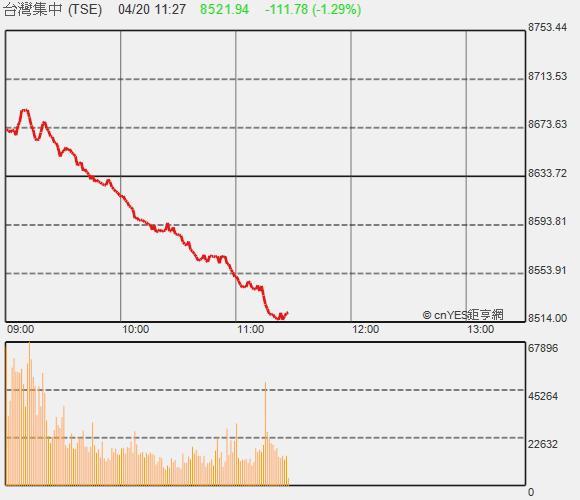 台股盤中—美股重挫 大立光漲停撐腰 力守平盤小漲格局