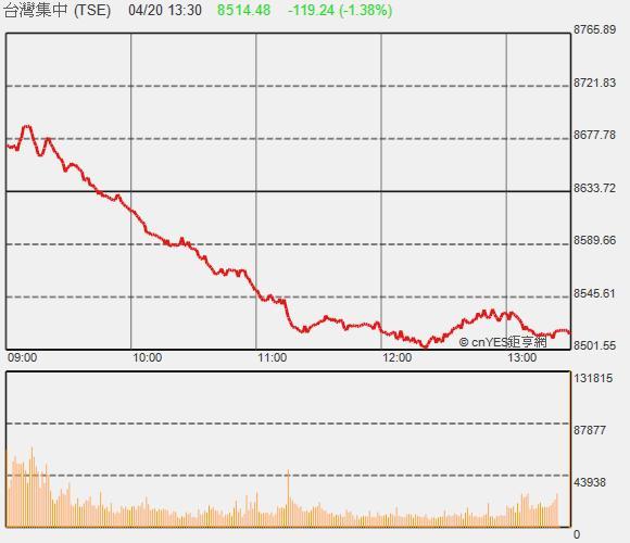 台股盤後─熊影幢幢!股王軟腳 櫃買災情慘 量縮暫別8900