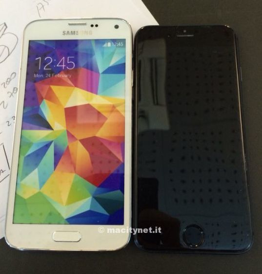 新浪手機訊 5月4日上午消息,義大利網站Macitynet自從得到一個“iPhone 6真機模型”后不斷用它與各種熱門手機對比,今天被用來對比的是三星Galaxy S5。