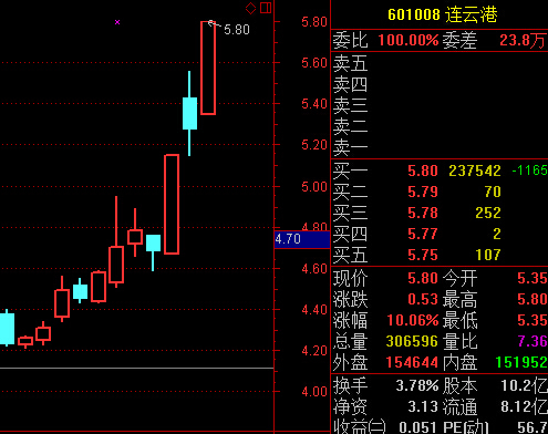 快訊:港口股整體強勢 連云港漲停