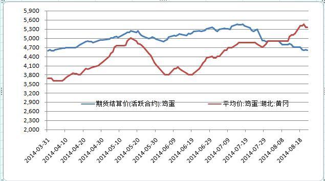 2014年國內雞蛋期現貨行情走勢走勢如下圖