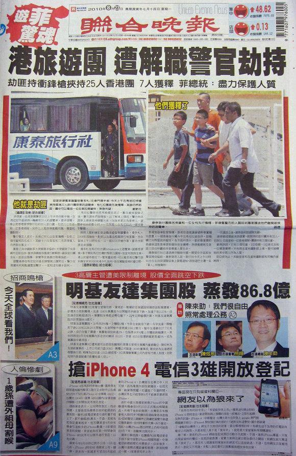台灣主要晚報標題一覽 (8月23日)