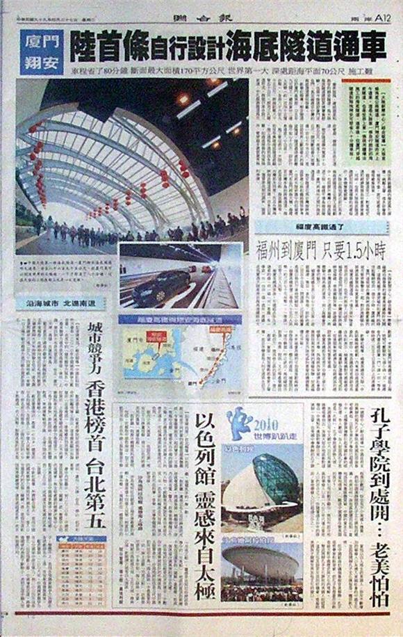 ■廈門翔安 陸首條自行設計海底隧道通車