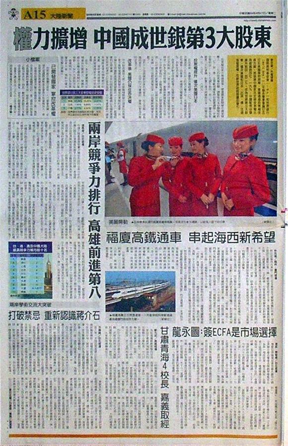 台灣主要報紙大陸版要聞標題一覽 (4月27日)