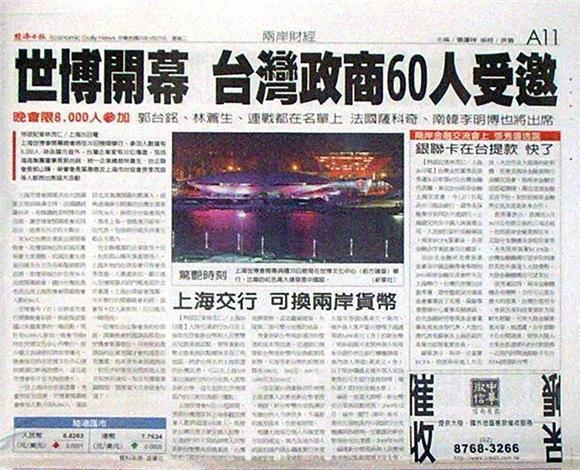■世博開幕 台灣政商60人受邀