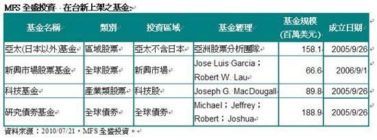 MFS全盛系列四檔基金台灣上市